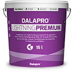 Dalapro Lightning Premium er en færdigblandet hvid sprøjtespartelmasse til spartling af samlinger/fuldspartling og overfladebehandling af gipsplader.
